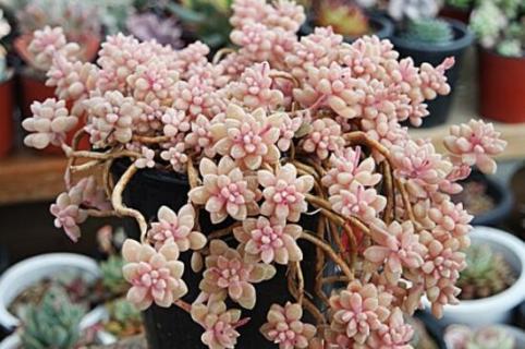 姬秋丽和丸叶姬秋丽的叶片形状、叶片颜色、花型花色以及株型都有区别,相比之下丸叶姬秋丽的叶片更为饱满,强光下的叶片呈橘红色,花朵是白色的,株型蓬松。姬秋丽强光下呈淡粉奶油色,白色的花朵上带有红点,株型紧凑。