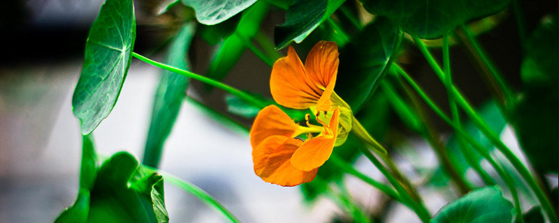 旱金莲适合生长在光照充足的环境中,在养护过程中需要适当的补充光照,最好将其放在室外光照充足的环境中养护,以免光照不足导致旱金莲叶子变黄。同时在室外光照过强时需要适当遮荫。