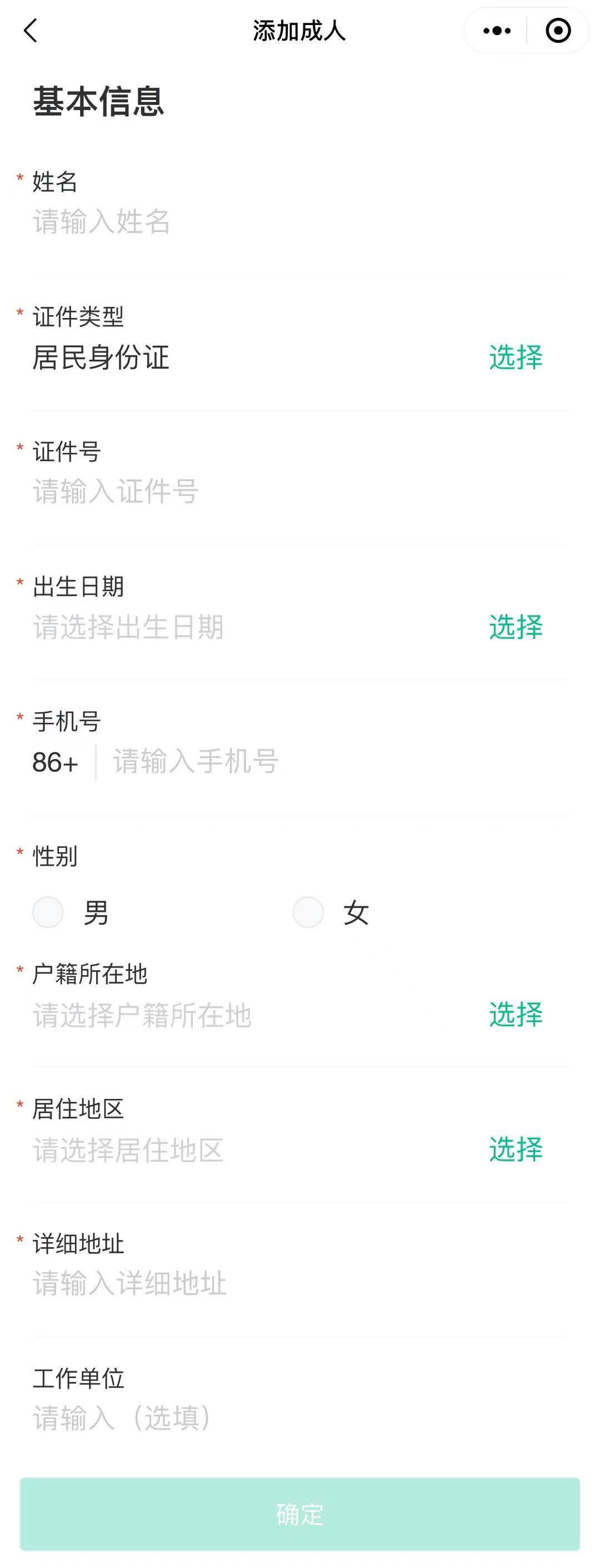 7.填写个人基本信息后点击“确定”添加。带*为必填信息。