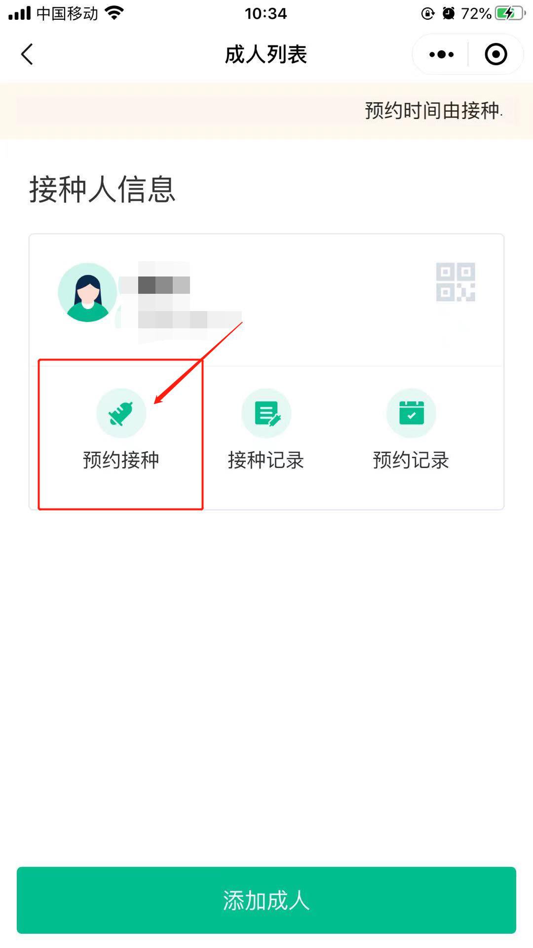 8.添加成功后点击“预约接种”即可进行预约。