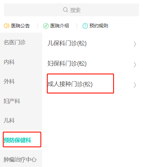 微信关注东莞东华医院服务号-智慧医院-预约挂号-东莞松山湖东华医院-预防保健科-成人接种门诊。