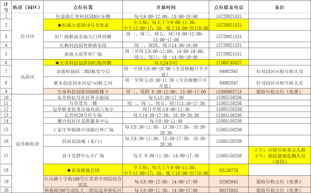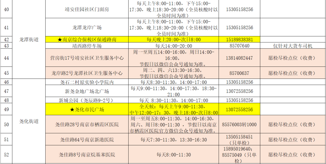 栖霞区便民采样点位置及服务时间如下: