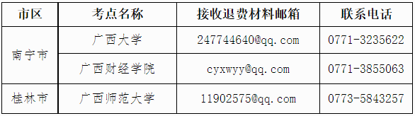 四、各考点接收退费材料邮箱及咨询电话