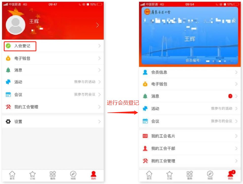 注:未进行会员登记请先进行会员登记/会员入会操作