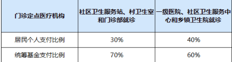 参保居民在本人签约的门诊统筹医疗机构门诊就诊,医疗费用不设起付线,年度最高支付限额为200元,具体支付标准比例如下: