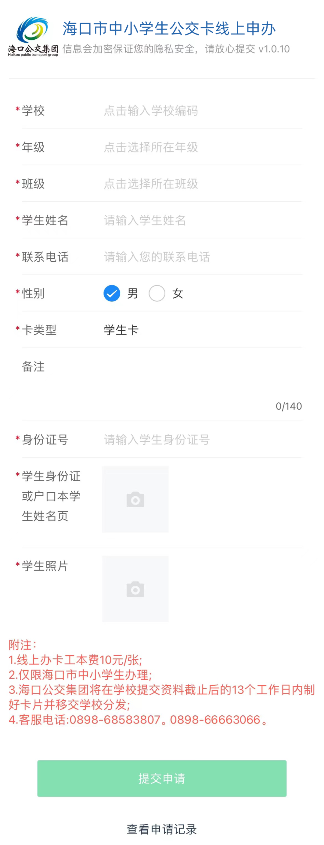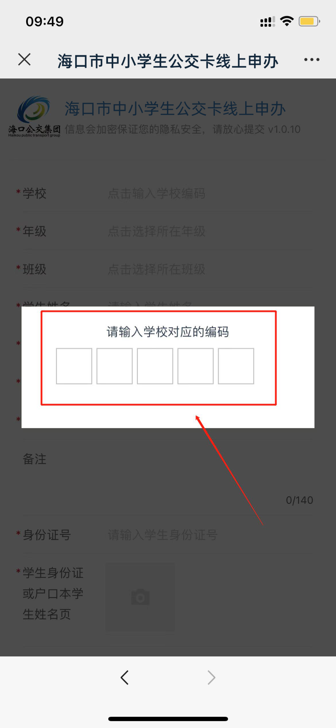 海口公交集团给每个学校发送对应该校的学生卡办理编码,届时家长仅需输入对应编码即可自动匹配所属学校
