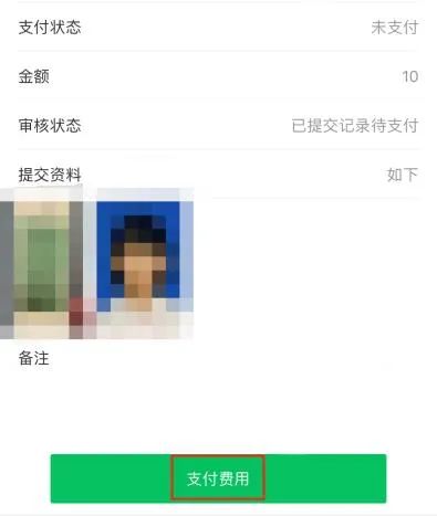 上传资料确认正确无误后点击支付费用,需支付10元制卡工本费(线上申办流程以完成支付为结束)
