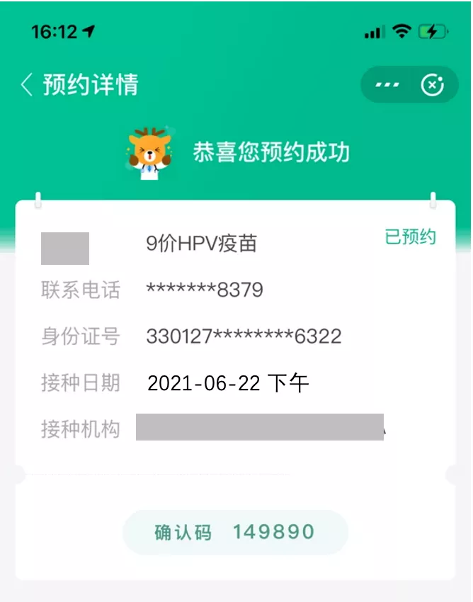 4.预约成功后,将获得确认码和确认短信。之后请携带相关证件,按预约时间准时前往接种点接种。