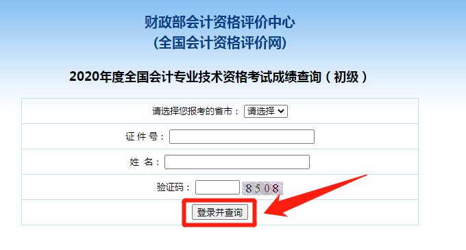 第四步:输入证件号、姓名和验证码,点击“登录并查询”即可查询成绩