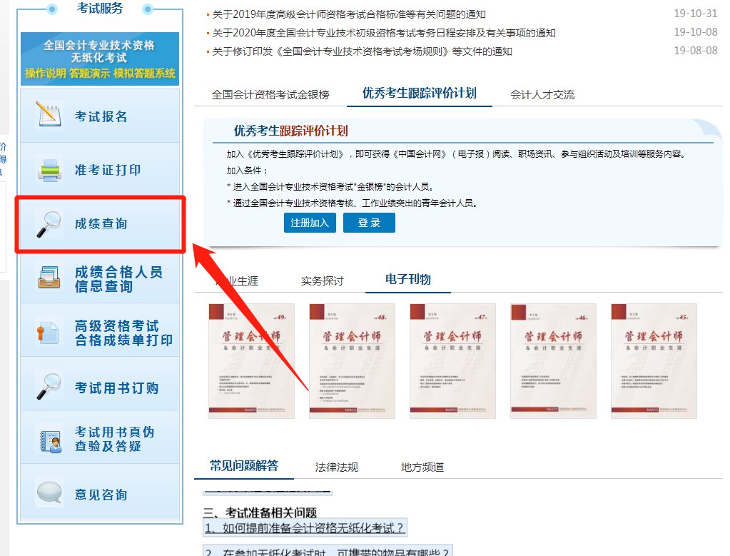 清远初高级会计师考试成绩查询入口+流程
