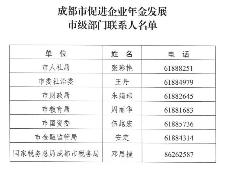 成都人社发布了《成都市人力资源和社会保障局等七部门关于促进企业年金发展的指导意见》,主要内容如下:
