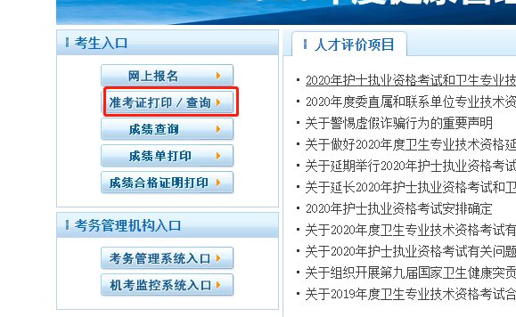 第一步:进入中国卫生人才网(https://www.21wecan.com/),点击”准考证打印“,如下图所示: