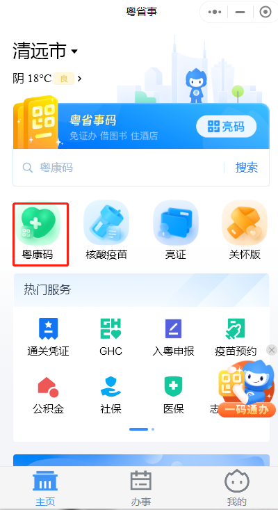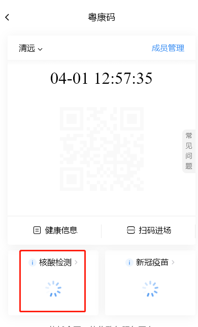 2.即可在粤康码左下角处查询到近期的核酸检测结果。