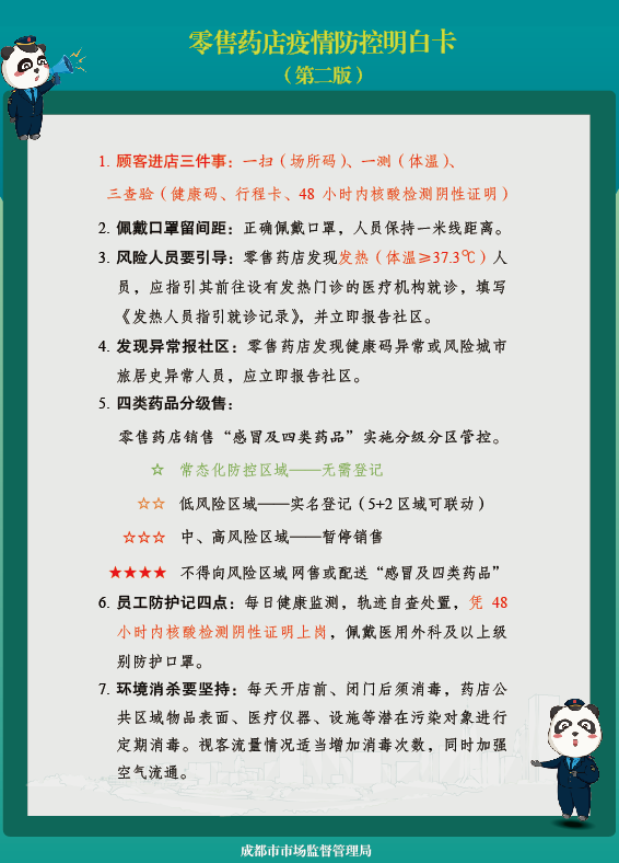 成都市局部区域出现本土疫情时,四川天府新区、成都高新、锦江、青羊、武侯、金牛、成华等“5+2”区域按照《指南》要求实施“感冒及四类药品”线上线下销售管控联动,其他区(市)县按照属地疫情防控指挥部的要求实施。