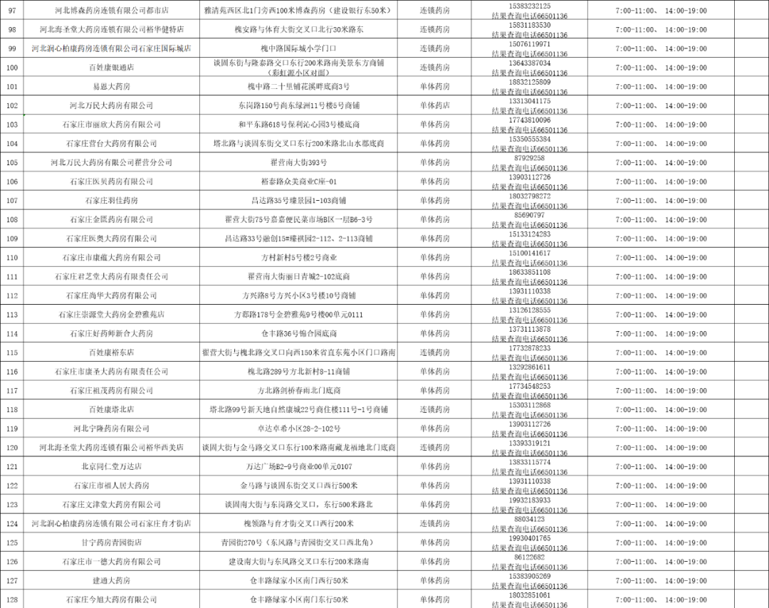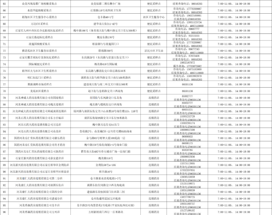 为方便全体居民就近进行常态化新冠病毒核酸筛查,裕华区在相关场所设置了采样点,各核酸采样点位置及服务时间如下: