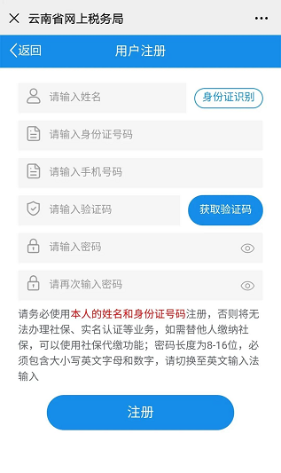 2.进入用户登录界面点击【注册账号】进行注册。按要求输入真实、准确的个人信息,输入手机号码后点击【获取验证码】,输入收到的验证码后设置密码,点击【注册】,提示“注册成功”即完成注册。