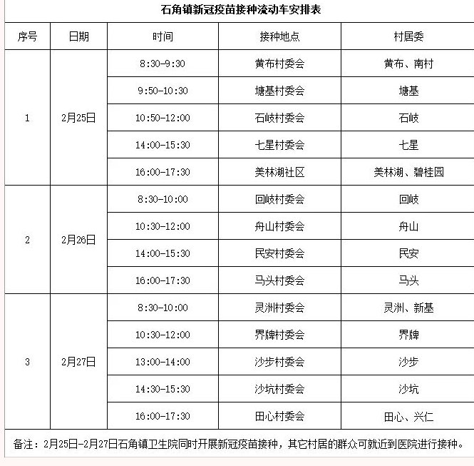 2月25-27日清城区石角镇流动接种车安排