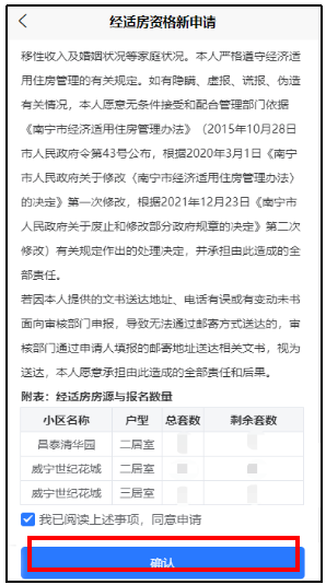 4. 勾选“我已阅读上述事项,同意申请”,点击“确认”进入申请列表。