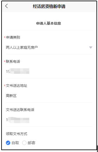 5. 在申请列表中,填写申请人基本信息,选择申请类别、领取文书方式。