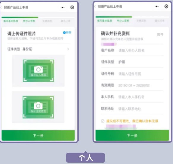 3.根据所选择的客户类型,上传所需证件图片,确认并补充资料(资料提交后不可更改);