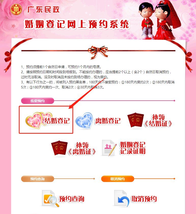预约入口:广东省婚姻登记网上预约系统
