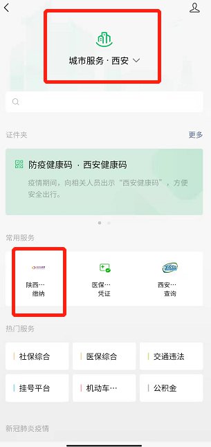 微信打开——右下角——“我”——点击“支付"——点击“城市服务”——点击“社保”一点击“陕西省社保缴纳”。