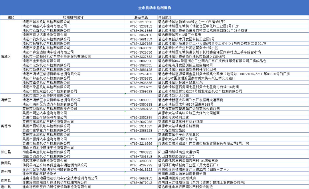 清远车辆年检办理地址汇总(清远汽车年检地址)