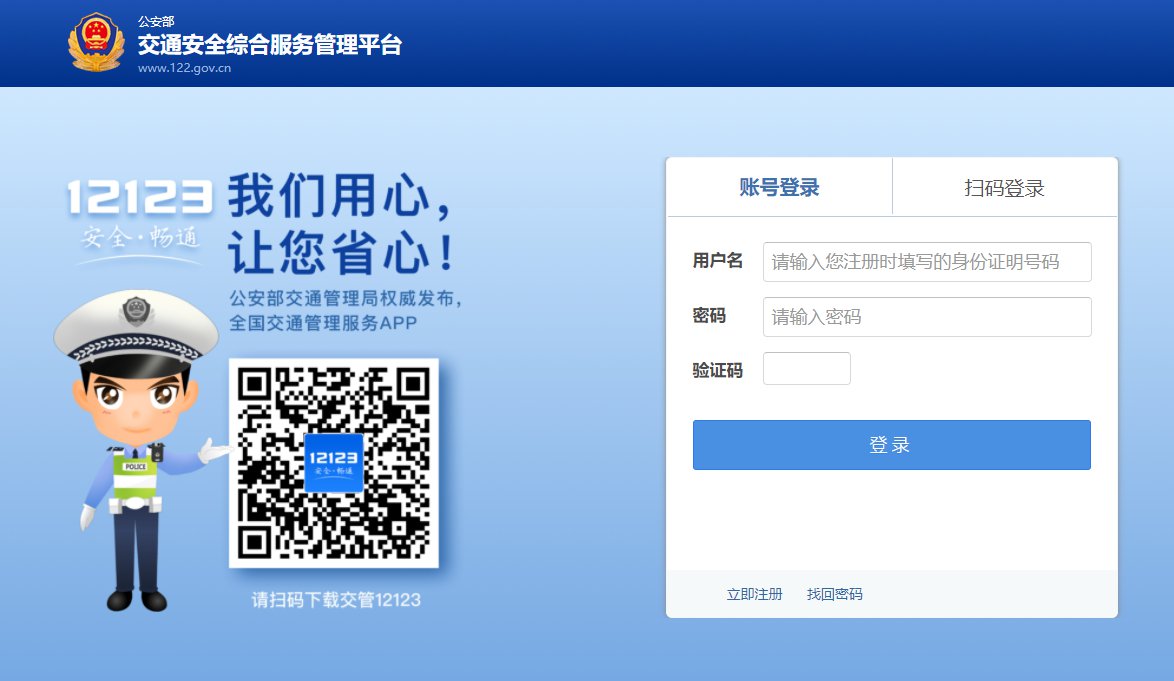 登录互联网交通安全综合服务平台,进入登录页面,输入账号密码,登录后即可预约。