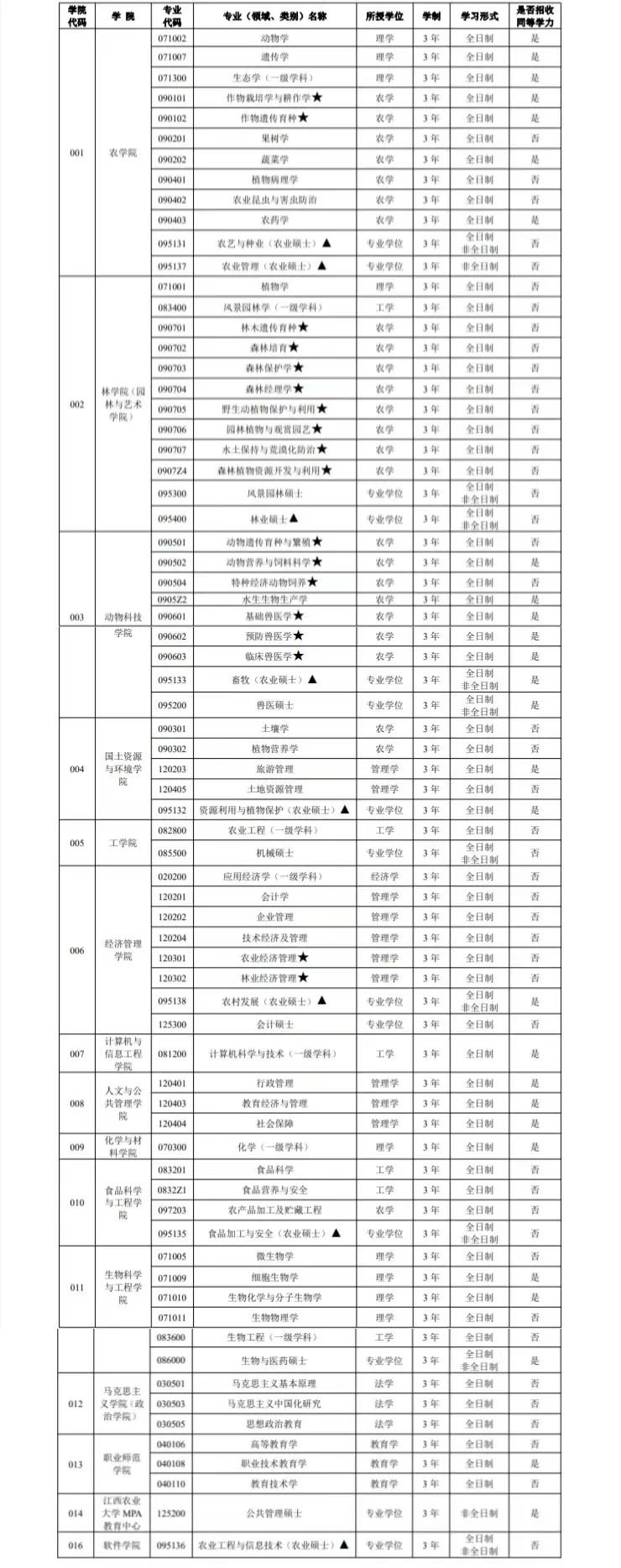 3、加▲专业可招收“一村一名大学生工程”考生报考,培养方式为“非全日制”。一览表