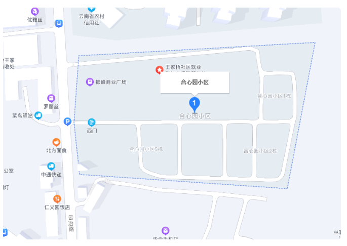 合心园项目位于位于昆明市五华区云冶路15号附1号,紧邻云铜生活区和博众花园,由住宅区及配建商业区组成。