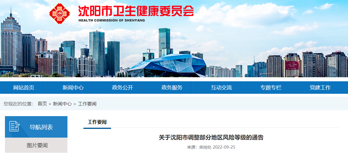 关于沈阳市调整部分地区风险等级的通告