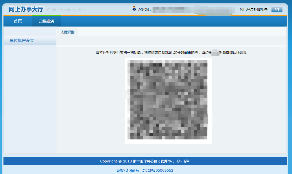 经办人用支付宝扫描二维码进行人脸识别操作,人脸识别通过后按要求录入相关信息,提交生成单位公积金开户受理回执,打印该回执后提交即完成单位住房公积金开户业务。