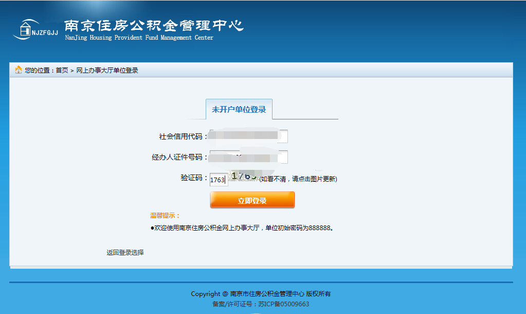 登录南京住房公积金网上办事大厅(←点击进入),选择单位账户设立,录入企业社会信用代码、经办人身份证号码和验证码后登录,点击单位公积金开户菜单,录入经办人姓名,选择证件类型后提交,系统自动生成二维码。