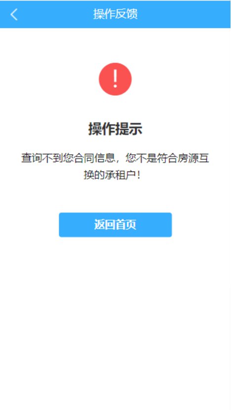 若您无承租保障性租赁房,则系统提示“查询不到您的合同信息,您不是符合房源互换的承租户!”