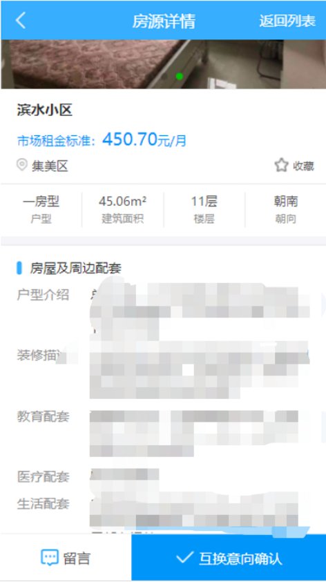 承租户浏览到自己满意的房源,可点击进入查看房源详情;承租户可点击房源图片查看房屋的具体细节展示。