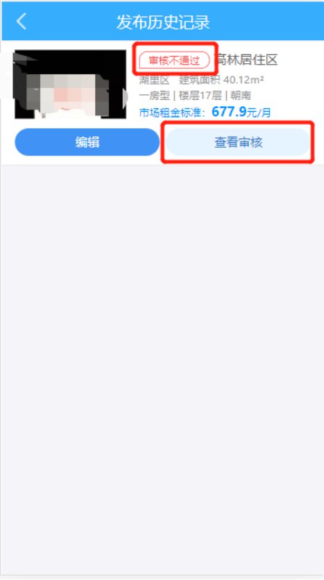 当承租户发布的信息,后台管理员审核未通过。则显示“审核不通过”状态(如图3-18),该状态下,承租户点击“查看审核”查看审核不通过的原因。若需整改,承租户可继续编辑互换信息,并提交后台管理员审核。