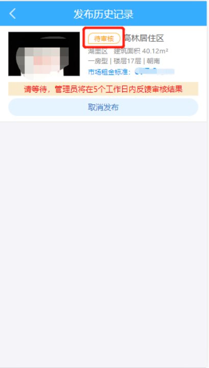 点击“发布历史记录”,查看承租户发布的互换信息。当承租户发布的信息还未被后台管理员审核。则显示“待审核”状态。