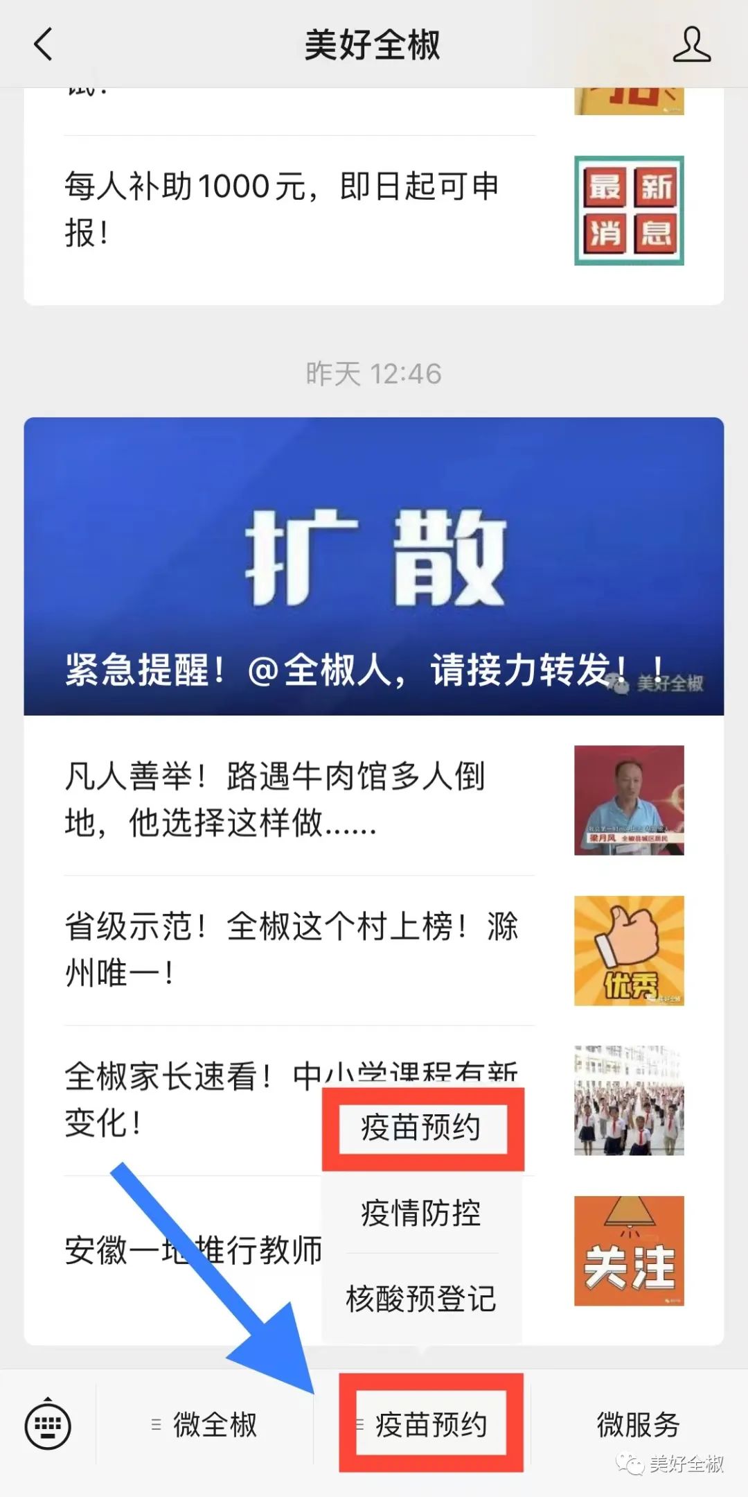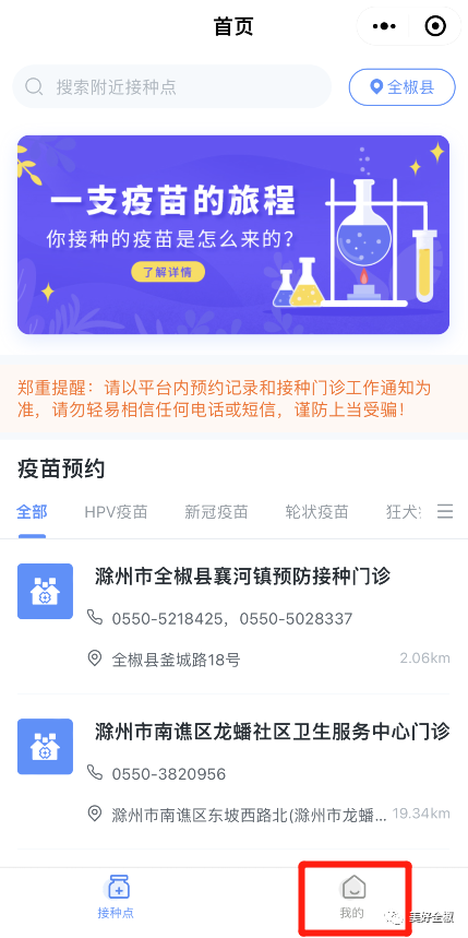 1.通过“美好全椒”公众号进入“知苗易约”小程序疫苗预约界面。