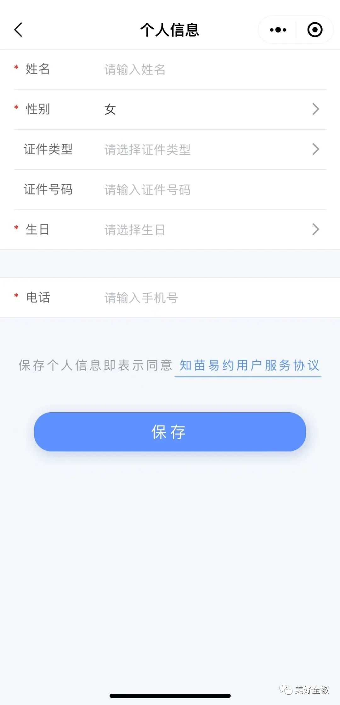 2.第一次使用,须填写个人信息。点击下方“我的”,点击“个人信息”,填写完整的个人信息,姓名、性别、身份证号、电话均为必填项,请如实填写,点击保存。然后选择相应接种点及疫苗品种进行线上预约,预约成功后会有提示信息。