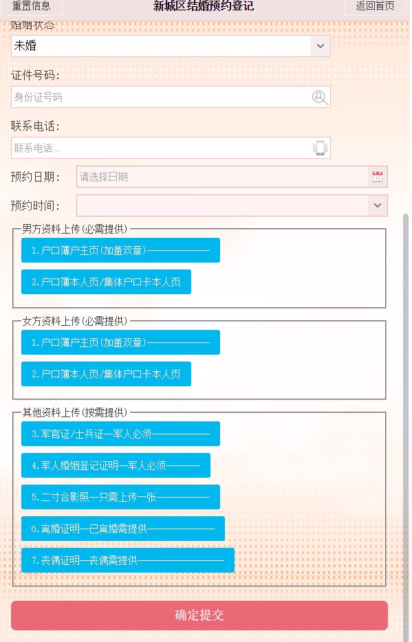预约流程(以微信西安民政局为例):
