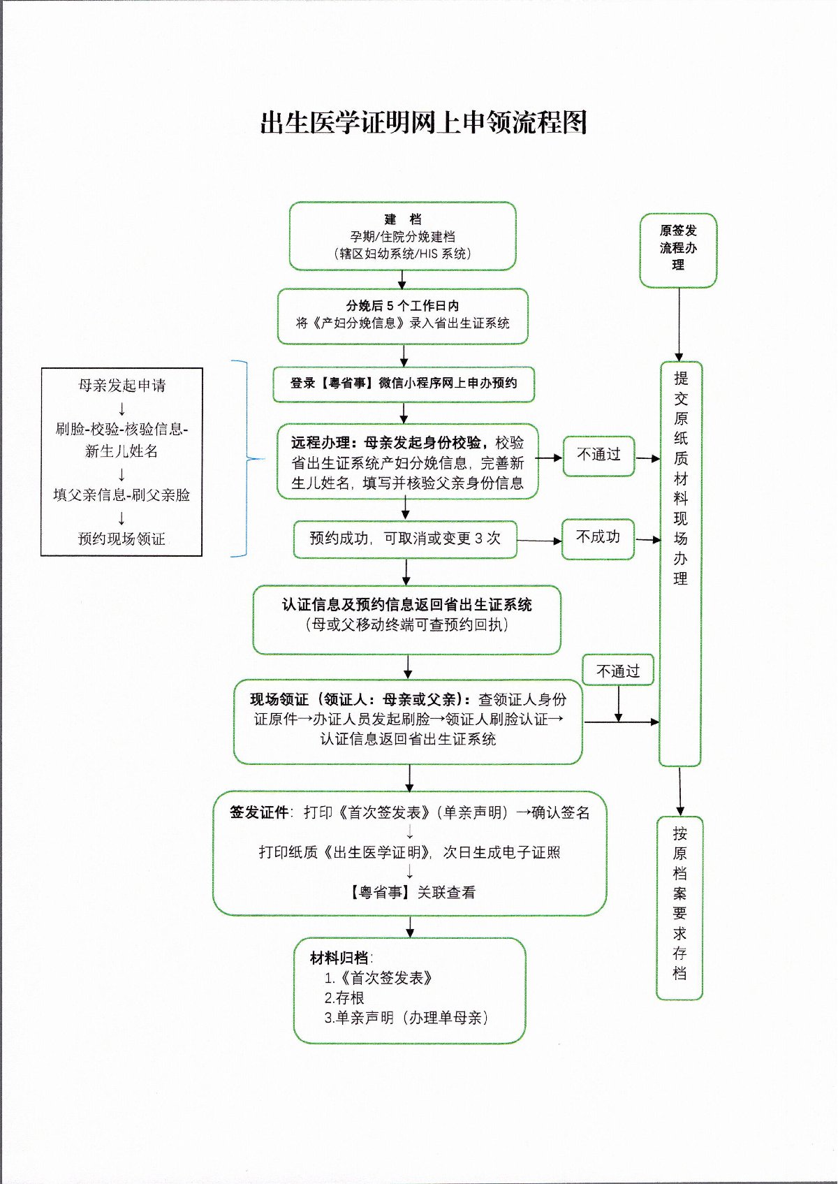 需新生儿母亲或父亲凭本人预约时刷脸认证所使用的证件原件和本人手机,现场刷脸认证、签名领取。