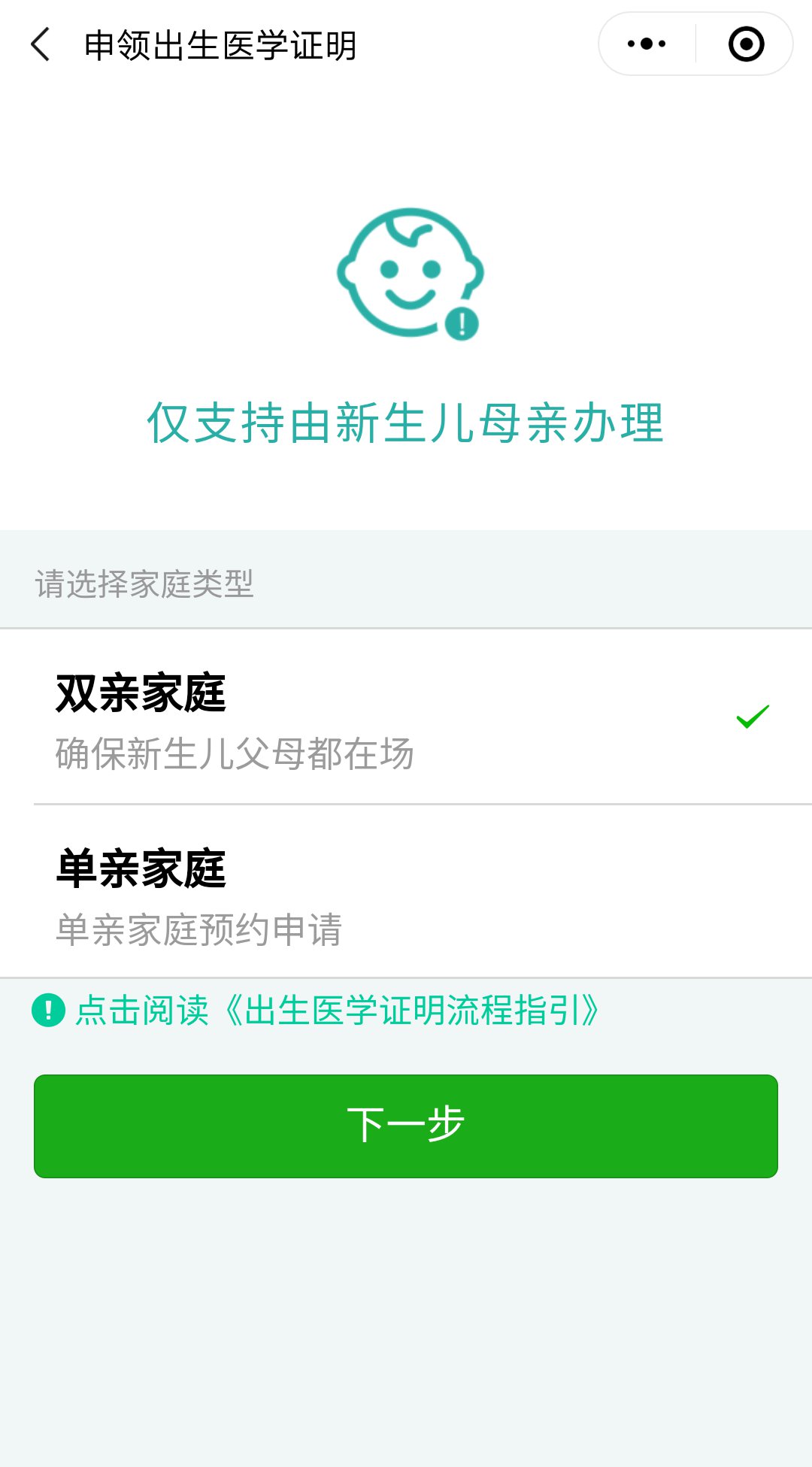 2、网上预约办理适用于在助产机构内分娩的首次领取出生证,且仅支持双亲或单母亲情形的申领。