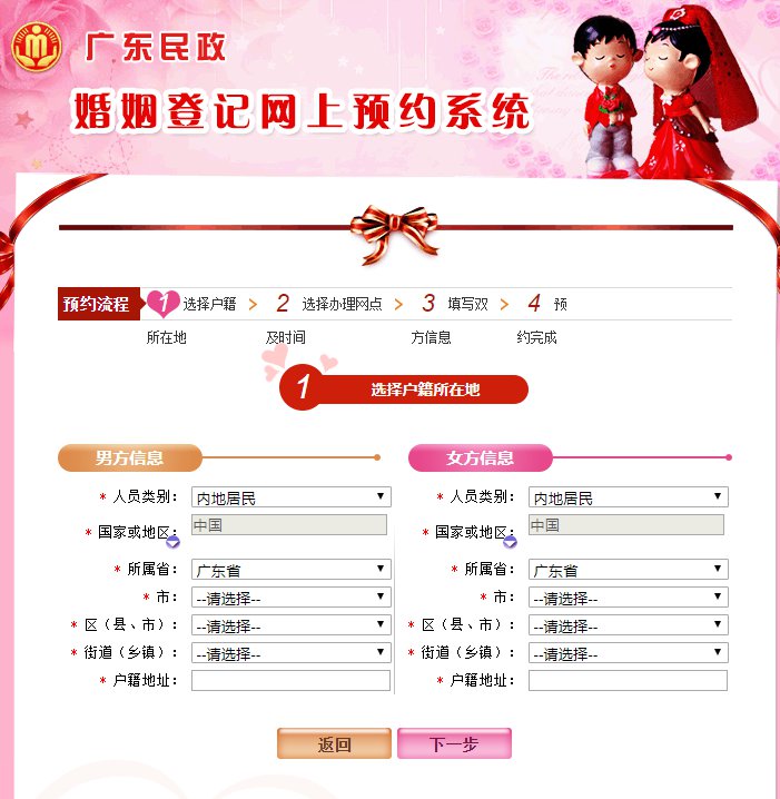 (一)申请补领婚姻登记证的当事人商量好办证时间,登录广东省婚姻登记预约系统,提前预约补领时间和补领机关。