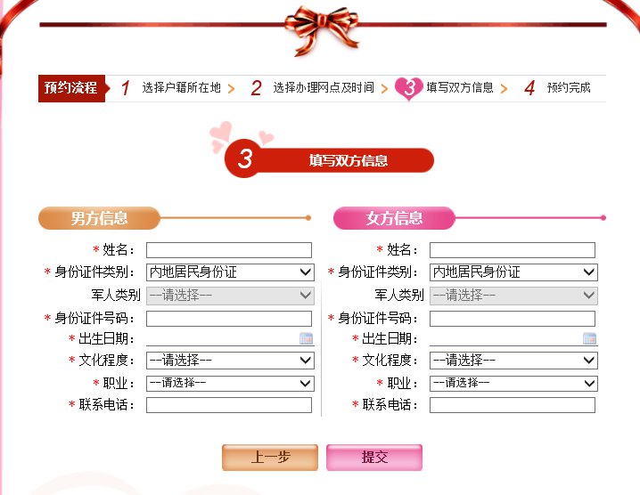 第五步:填写双方信息,预约完成。