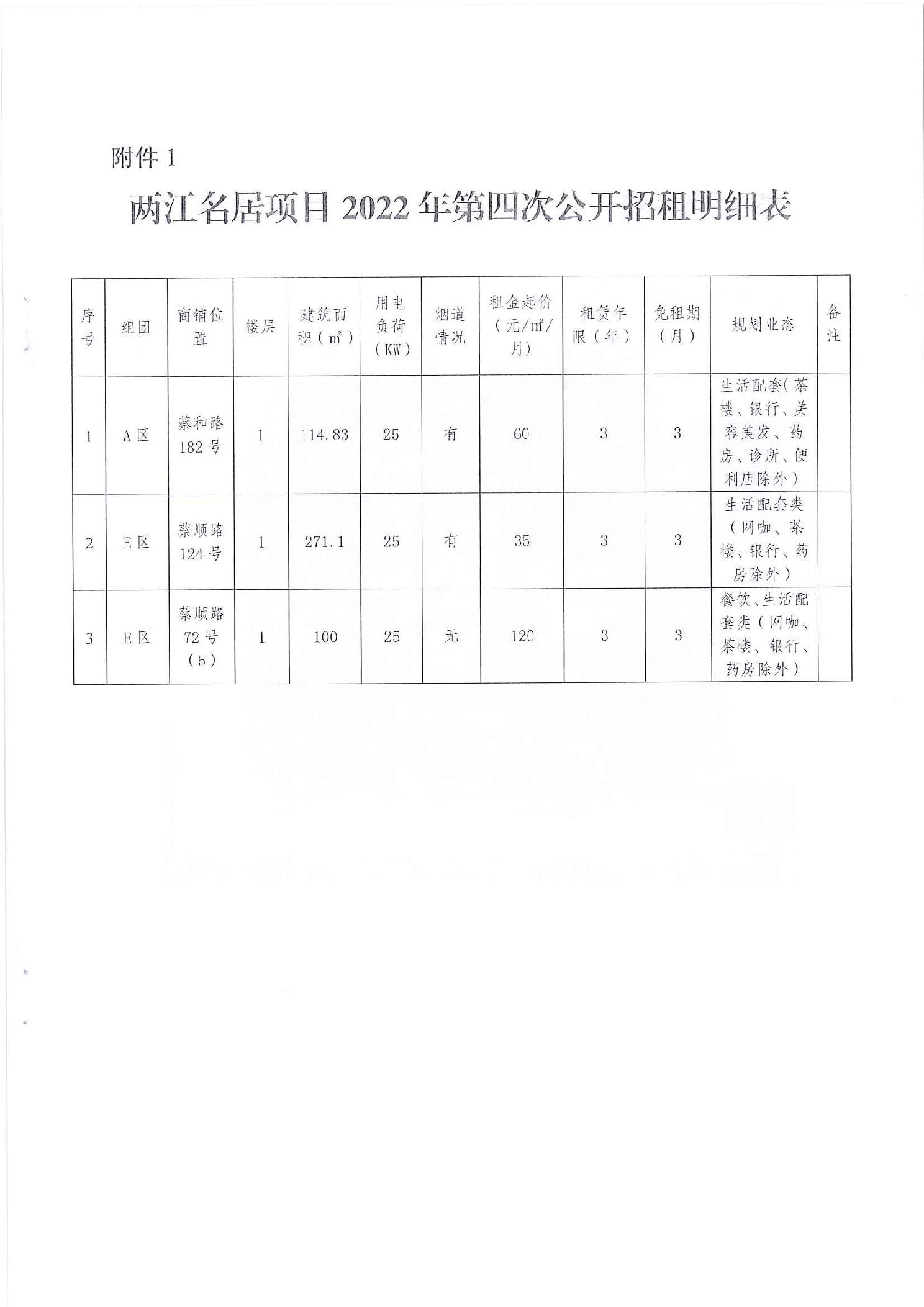 本次招租各商铺情况及招租条件明细详见附件1。