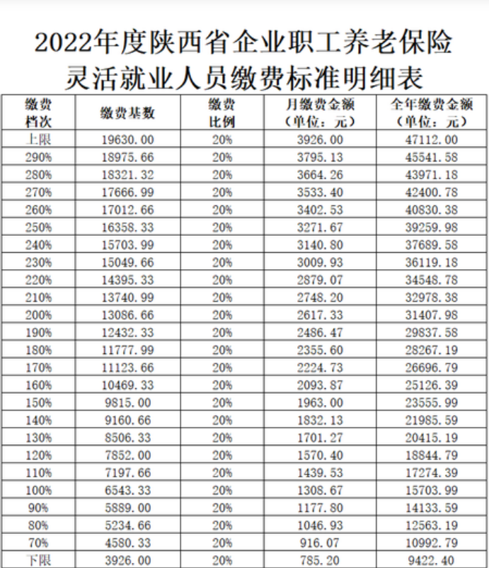 三、西安灵活养老缴费基数及比例
