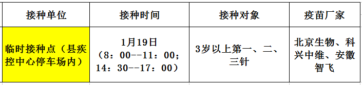 1月19日,佛冈县开放新冠病毒疫苗接种门诊有: