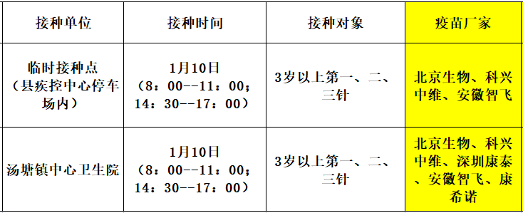 1月10日,佛冈县开放新冠病毒疫苗接种门诊有: