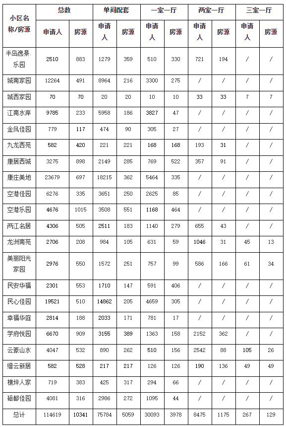 各小区房源和对应申请的具体情况可到各申请点咨询。