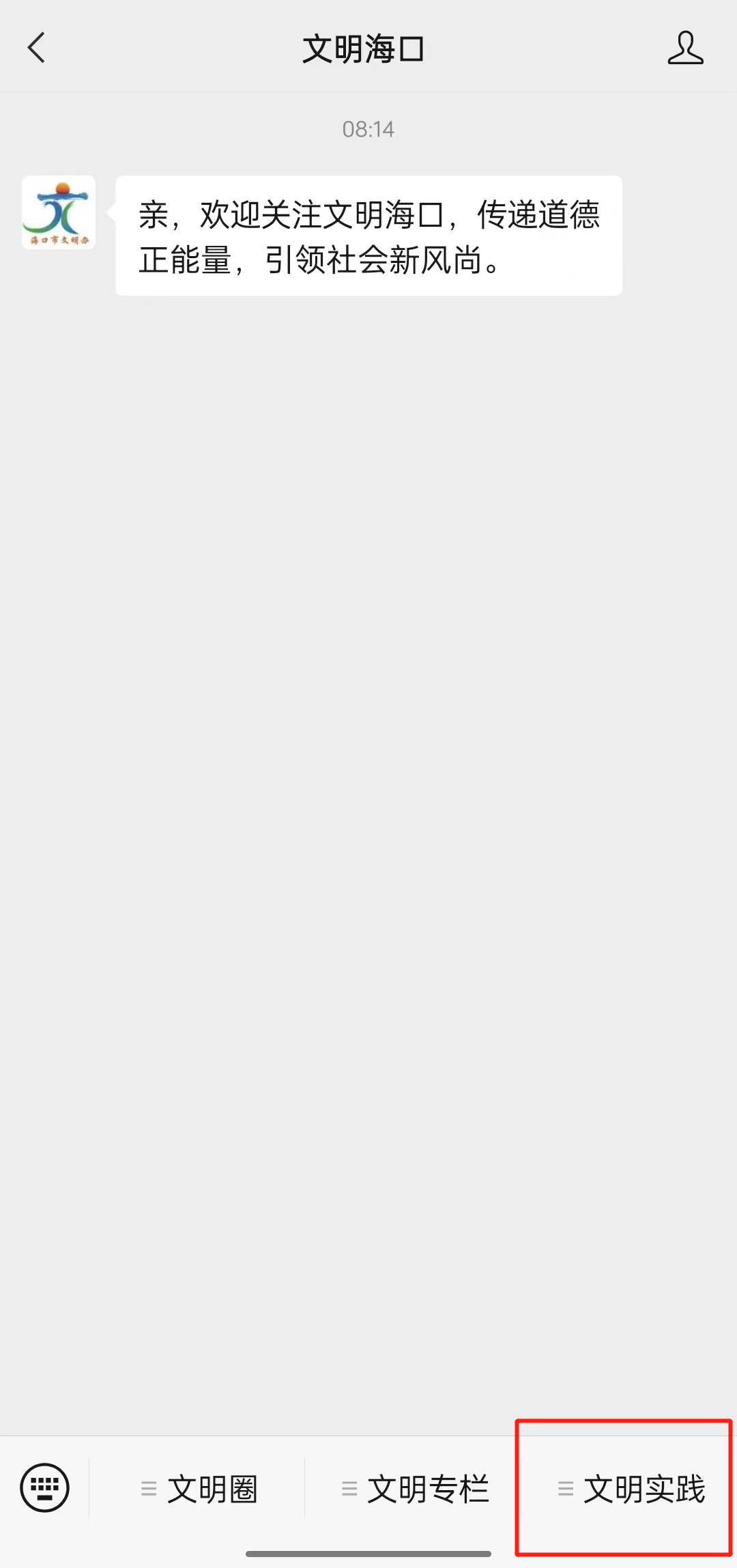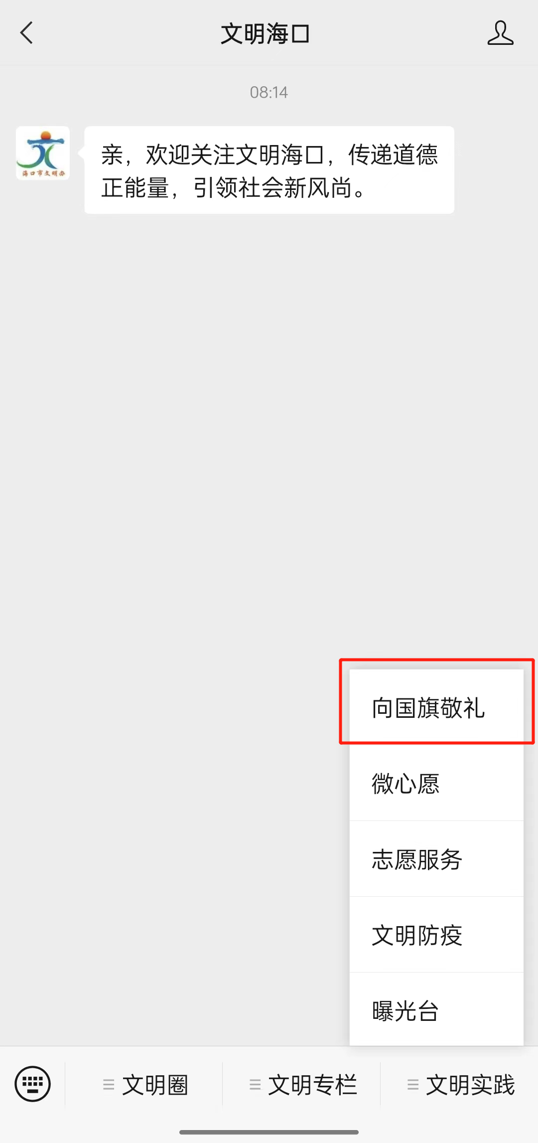 1.关注“文明海口”微信公众号;